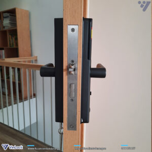 Hình ảnh thực tế khóa điện tử cho cửa gỗ MetaLock AZT-26 lắp đặt tại công trình